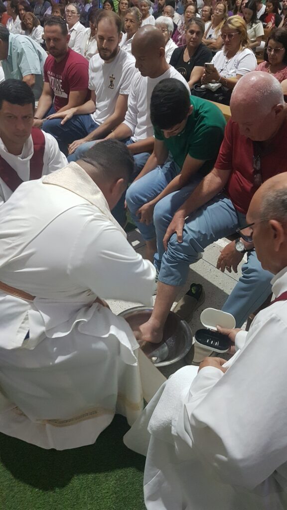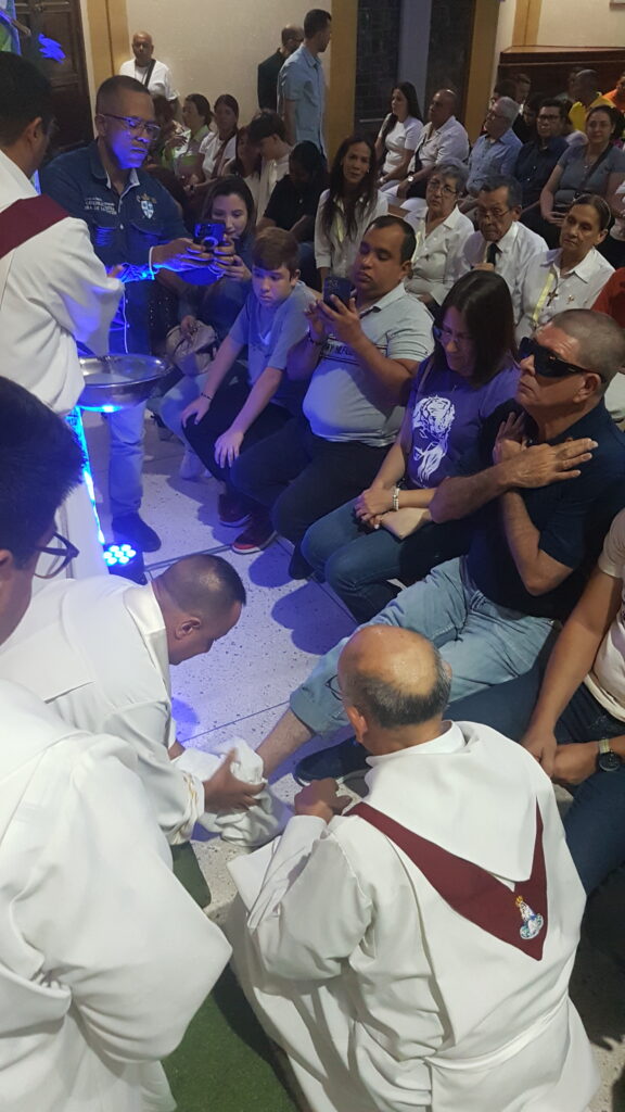 Seguidamente los sacerdotes realizaron el lavatorio de los pies a 12 laicos presentes en representación a los 12 apóstoles y símbolo del servicio que representan.